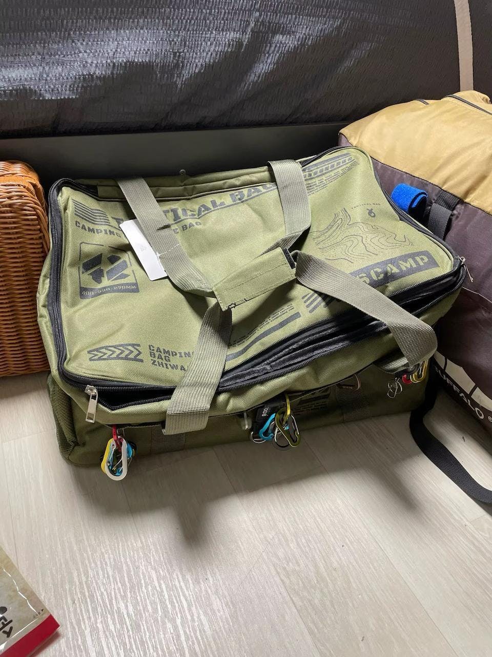 🔸 Large Capacity (Up to 42L): Easily stores cookware, gas canisters, camping lanterns, utensils, and more. Includes a zippered mesh pocket to optimize every inch of space.
